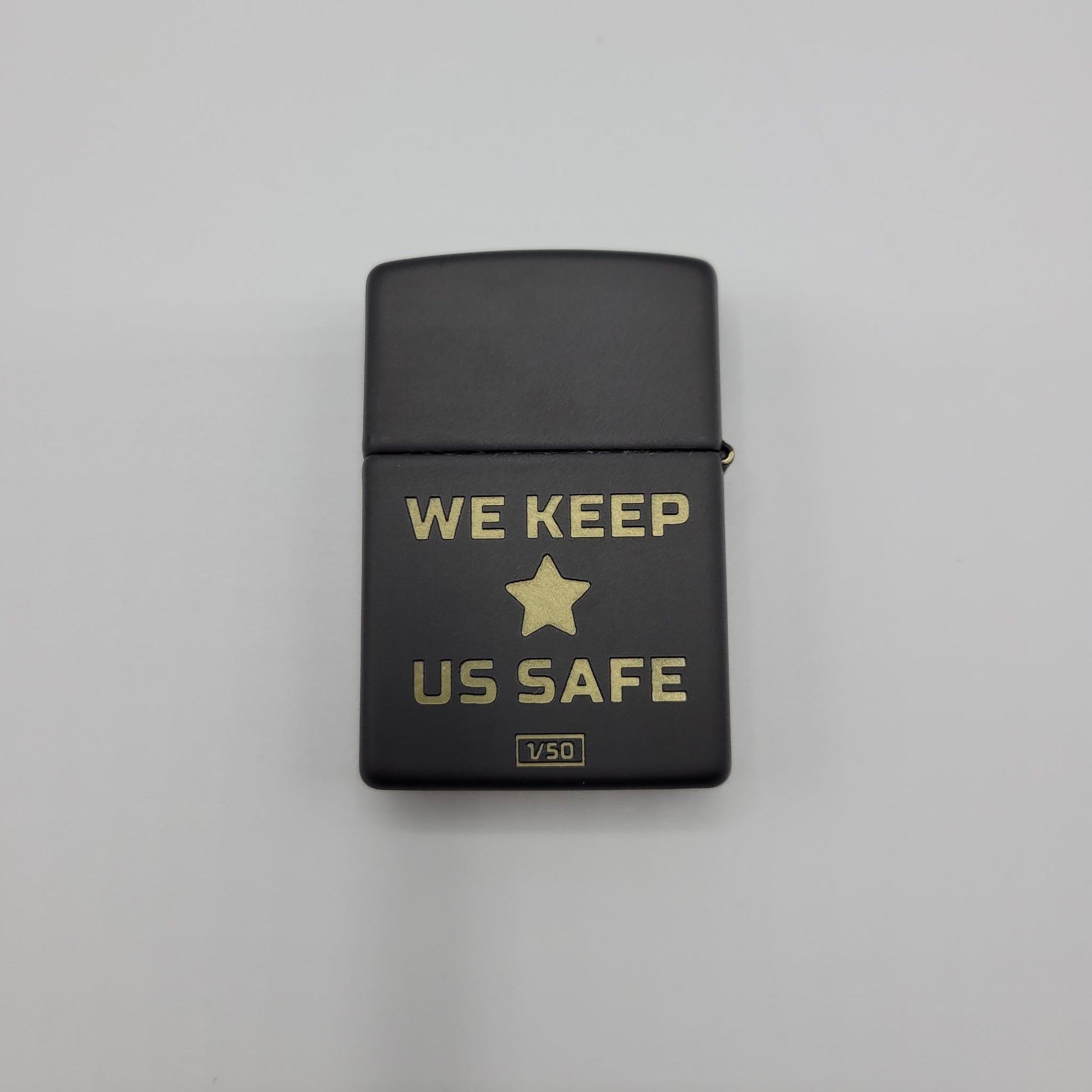 Show off your SRA pride with the official SRA Zippo! The black lighter features the SRA logo laser etched in gold on the front and the ubiquitous mantra “We Keep Us Safe” on the back - courtesy of OffColorDecals.